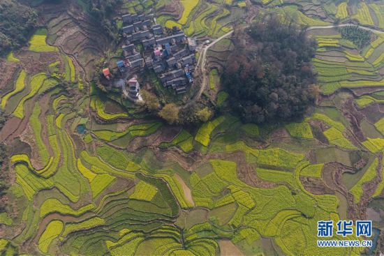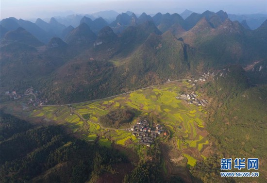 廣西融安縣東起鄉(xiāng)長豐村的田園春色(3月10日無人機拍攝)。 近日,隨著氣溫持續(xù)回升,廣西融安縣境內(nèi)的油菜花開放,春意盎然。 新華社記者 黃孝邦 攝