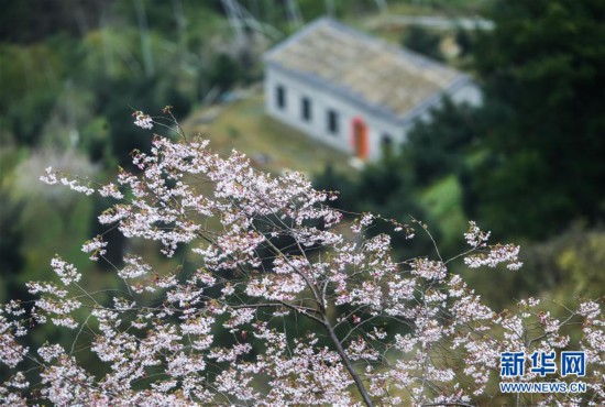 3月14日拍攝的三都鎮(zhèn)前源村盛開的櫻花。 新華社記者 徐昱 攝
