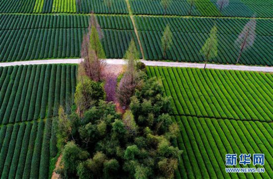 這是無人機(jī)航拍的武夷山市星村鎮(zhèn)生態(tài)茶園(3月26日攝)。