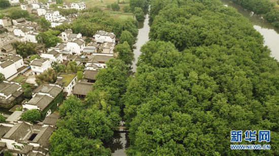 這是4月25日無人機(jī)拍攝的安徽省黃山市徽州區(qū)西溪南村。新華社記者 張端 攝