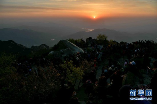 5月21日,游客在泰山看日出。新華社記者郭緒雷攝
