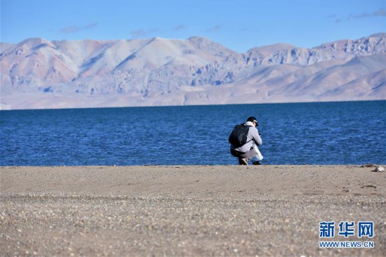 西藏那曲市申扎縣格仁錯(cuò)湖旁的游客(10月12日攝)。 新華社記者 周錦帥 攝