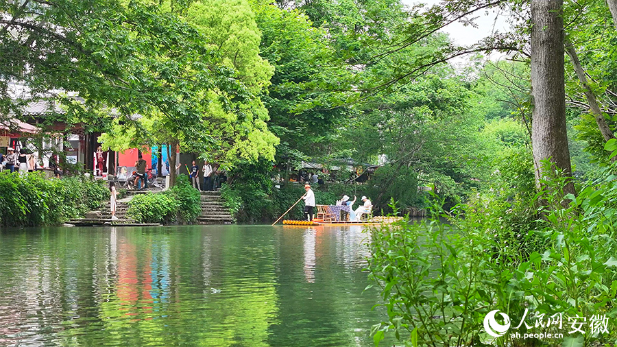 游客在西溪南體驗竹筏觀景。人民網(wǎng) 郭昊攝