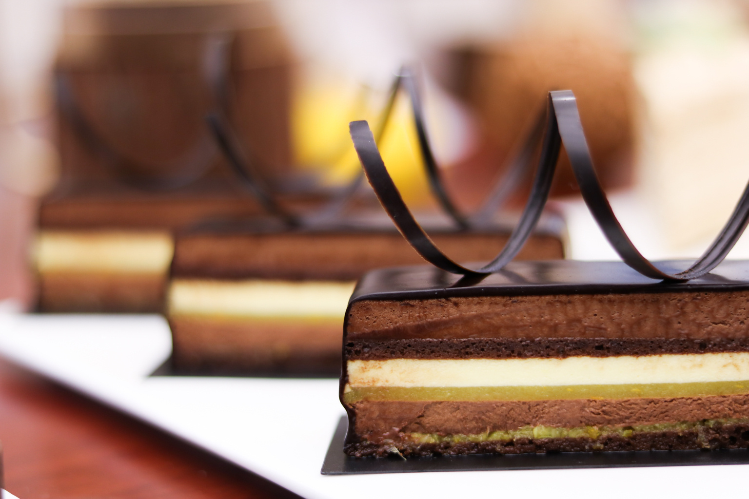 橙意:入口就能感受到這款甜品滿滿的誠意。為什么這樣說?Valrhona巧克力搭配口感微酸的橙子,橙味十足。層次分明,底層橙子醬,中間覆蓋橙子慕斯,巧克力封頂。初入口微酸,繼而酸甜交織,余味稍甜,如同甜品自身一樣分明。很多客人青睞于此。