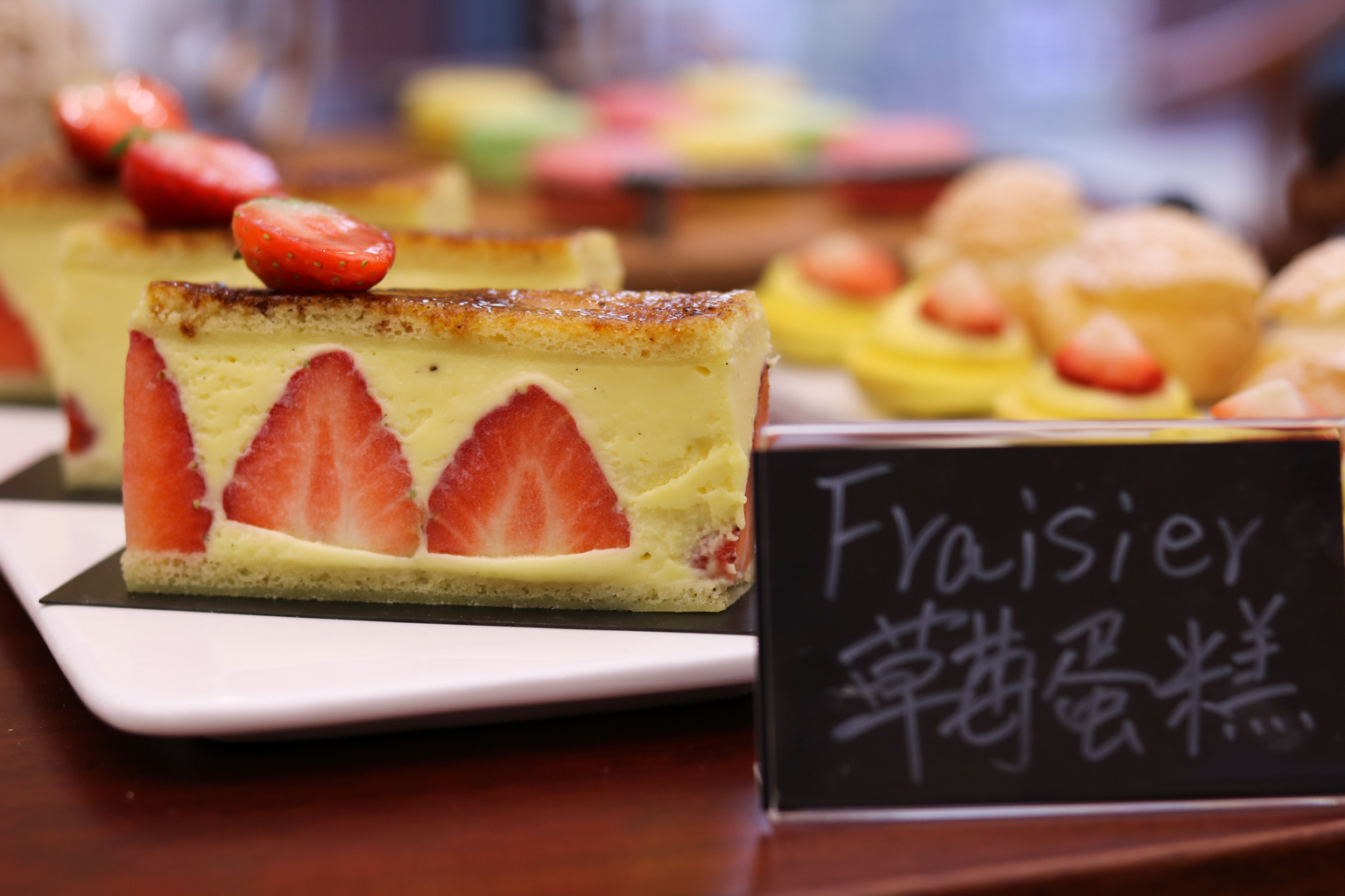 草莓蛋糕:12月應(yīng)季草莓上市,這時候草莓飽滿,用來做蛋糕最好不過。奶油入口卻有一種布丁的Q彈口感,表面融入焦。外表輕奢入口享受。