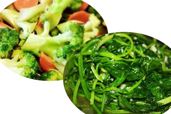 做法:把西蘭花切成小塊后用開水焯2分鐘,把脆皮腸切成片和西蘭花翻炒,起鍋后炒菠菜即可。