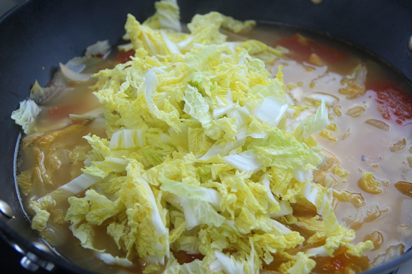 番茄 2個,豆腐 2塊,娃娃菜 一顆,生姜 3片,金針菇 一小把,蔥花 適量,清水適量