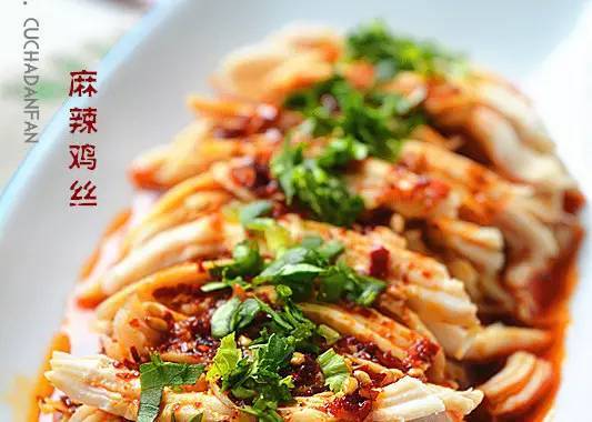 4. 將調(diào)料汁澆到雞絲上,撒點香菜末,吃時拌勻即可,好看又好吃。
