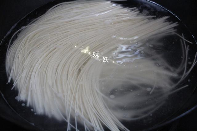 11,重新燒開一鍋水,把面條下去煮到五分熟。