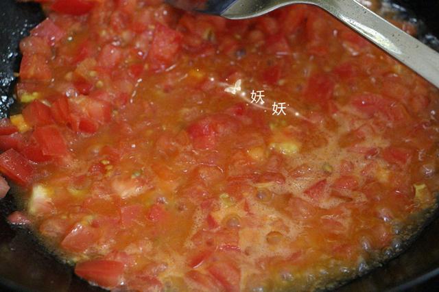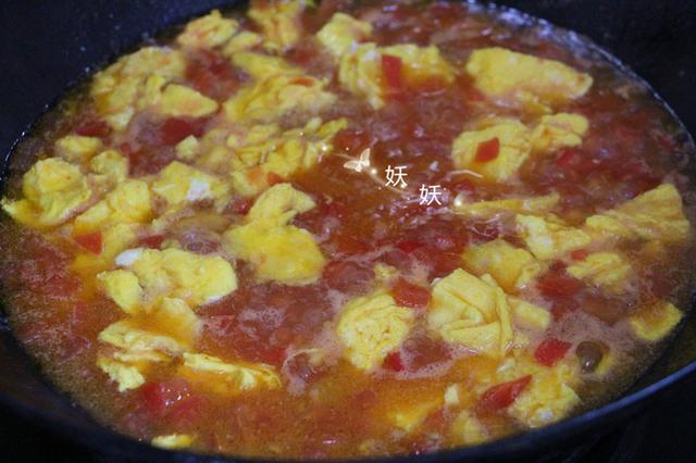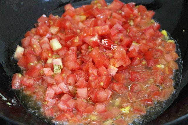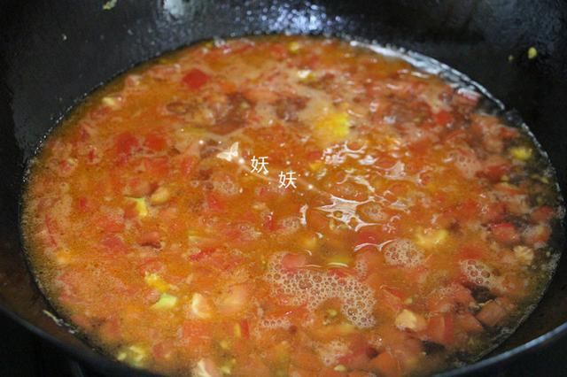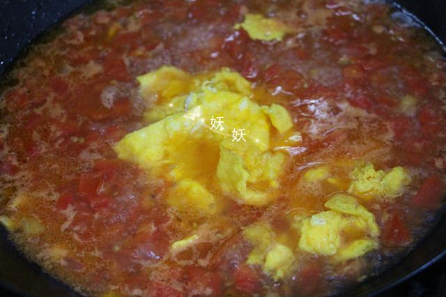 8,加入適量的水,煮開,可以稍微熬一會(huì)兒,使湯汁充分融合西紅柿的酸爽。
