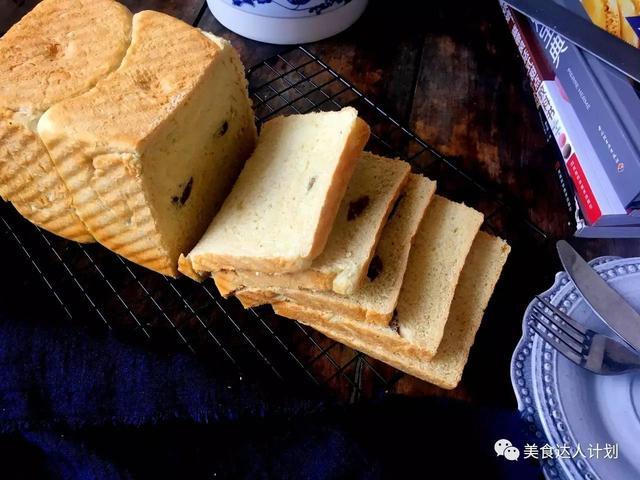 配料:高粉350g 雞蛋1個 細糖55g 牛奶100ML 黃油25g 干酵母4g 鹽2g 皇帝蕉1個 中種面團80g 葡萄干適量