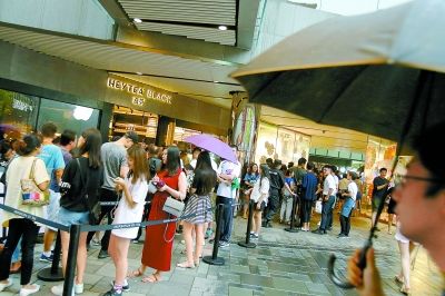 前天上午10點,位于朝陽大悅城的喜茶店剛剛打開大門,門口撐傘的隊伍就已經(jīng)甩出了幾十米。在潮人聚集的三里屯太古里,毗鄰蘋果體驗店的喜茶店排隊場景更為壯觀,隊伍直接延伸到了一旁的小巷里。