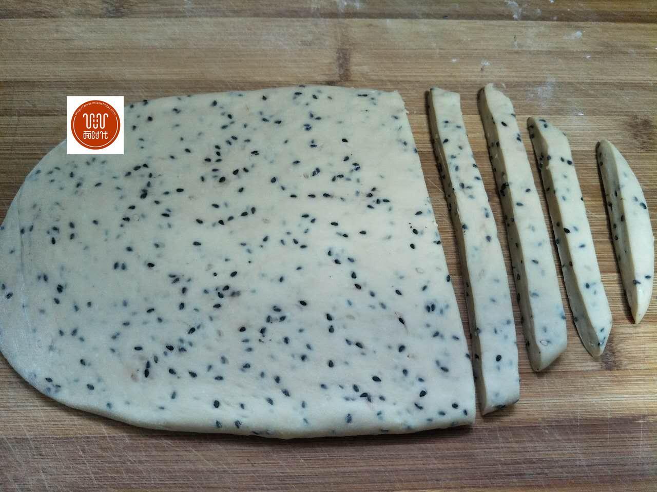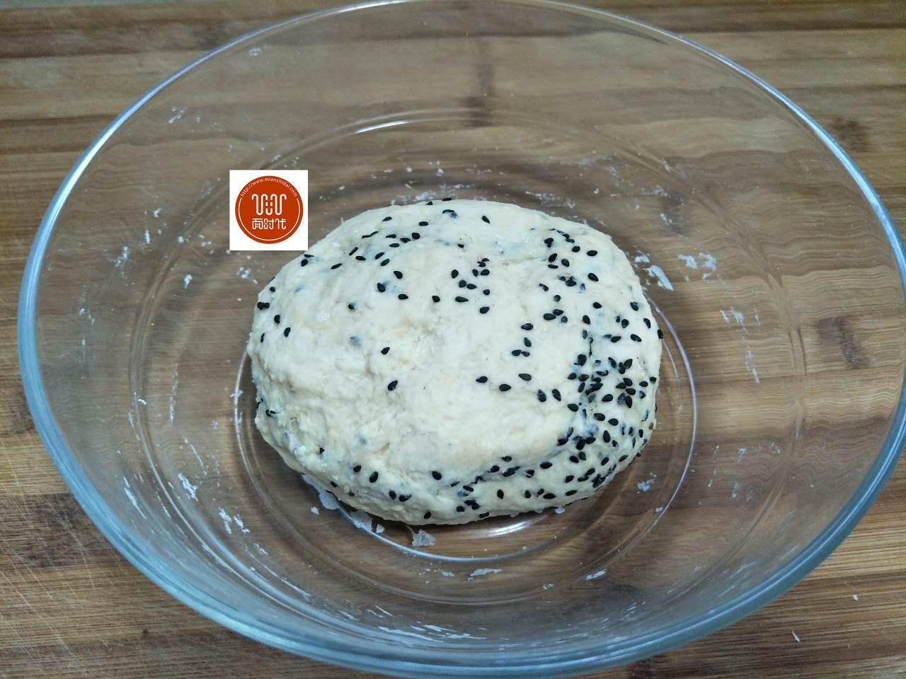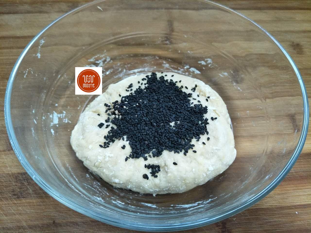 食材:面粉250克、雞蛋1個、蘇打1克、鹽1克、清水80毫升左右、黑芝麻適量。