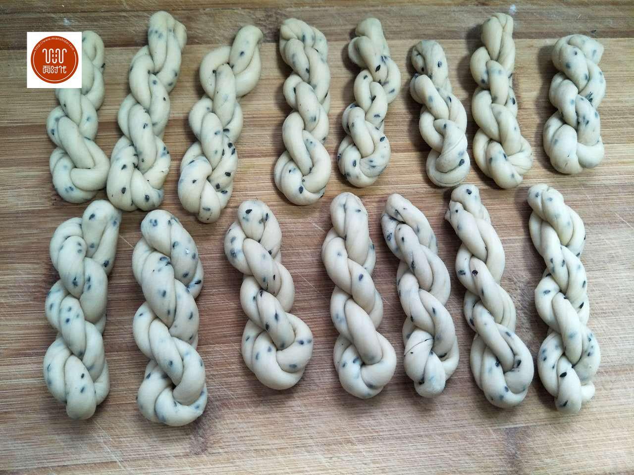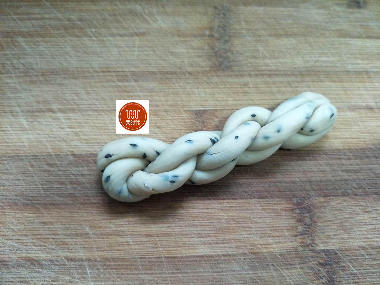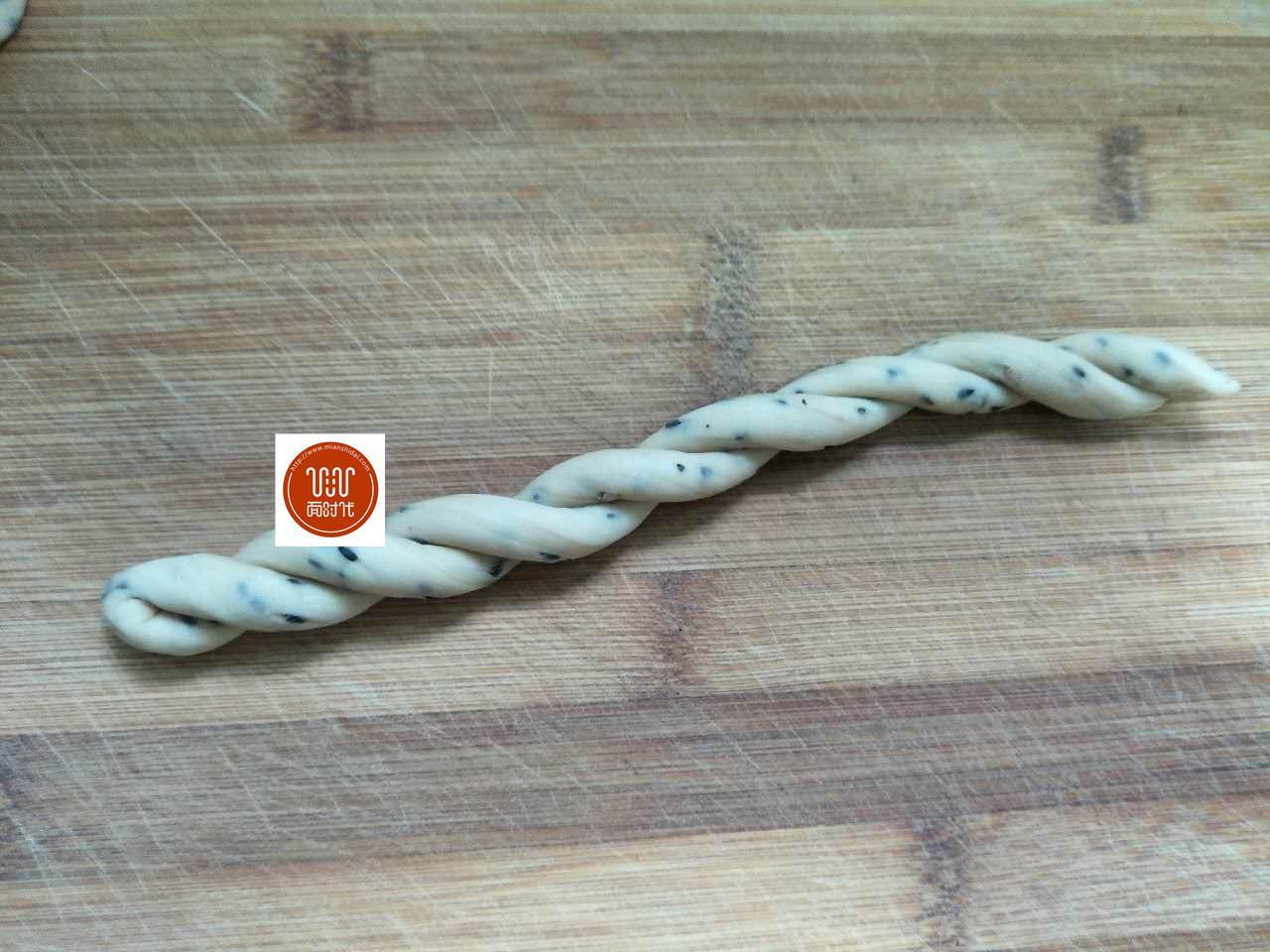 5、每一條搓勻搓長,對折后兩個手反方向搓成麻花形。
