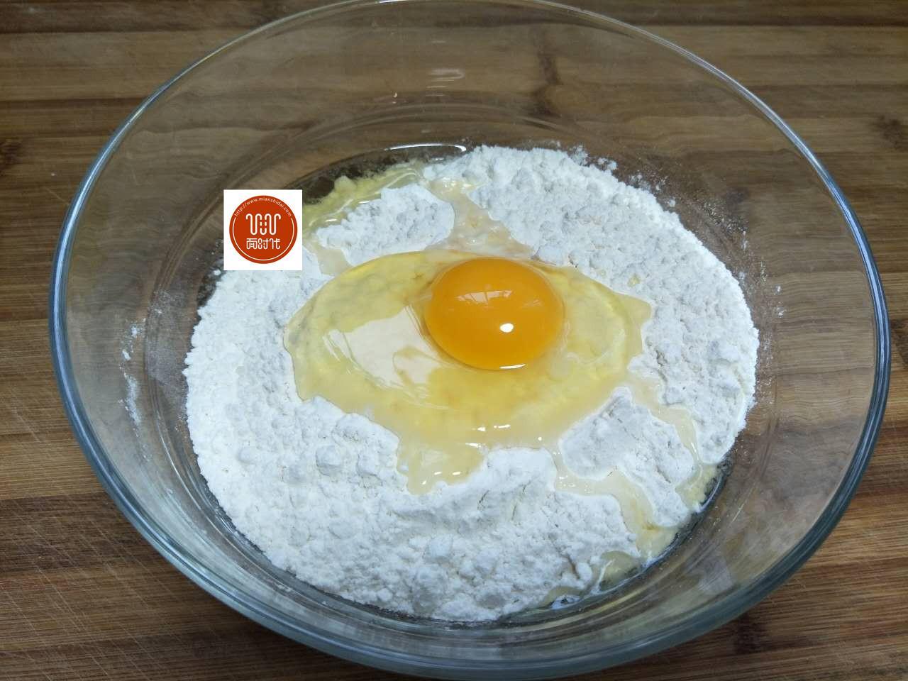 1、準備面粉,加鹽,如果喜歡甜味的也可以加糖雞蛋,緩緩加水。