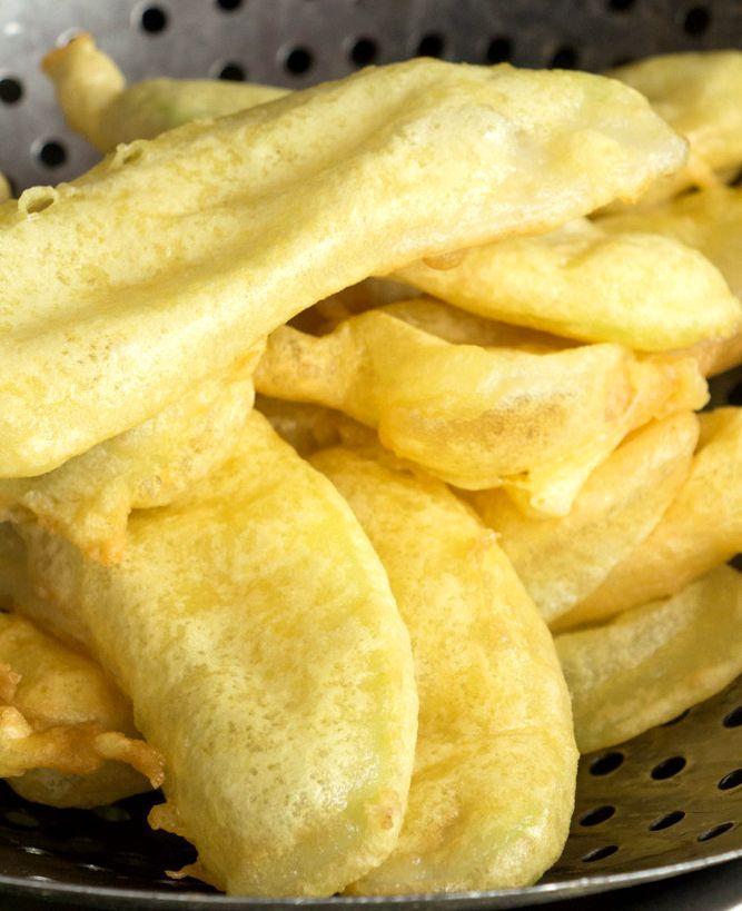 冬瓜片需要一片一片沾上脆皮糊后依次加入油鍋炸至成型,如果下入太多冬瓜容易粘在一起。