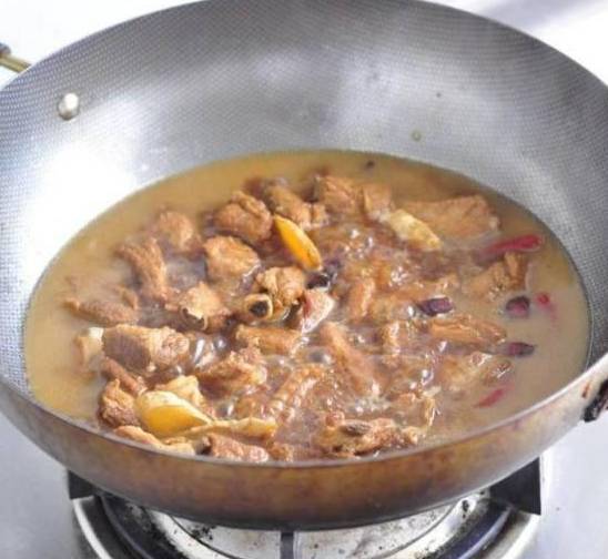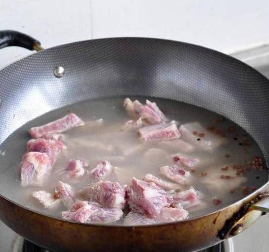 兌水淹沒(méi)排骨,大火燒開(kāi)。轉(zhuǎn)小火燉30-50分鐘。調(diào)入鹽