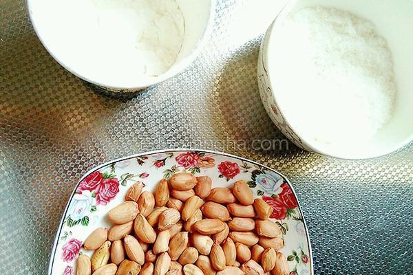 配料:花生適量、白糖四勺、水六勺、淀粉少量 烹飪步驟:1.準(zhǔn)備食材