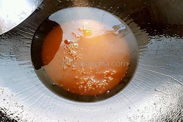 8.待鍋內(nèi)糖漿熬制的少許變色時(shí),迅速關(guān)火,不然糖漿就熬過了