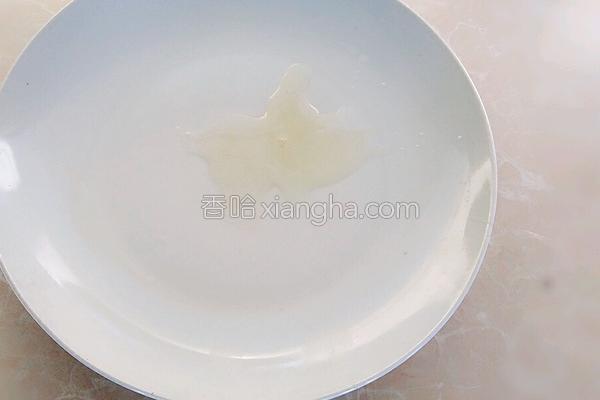 7.熬糖漿的空隙,快速取一干凈盤子,往盤子上到少許食用油,然后把盤子上用食用油抹均勻,裝拔絲紅薯時(shí)用,防止紅薯粘盤子