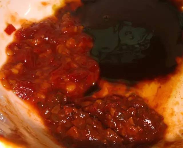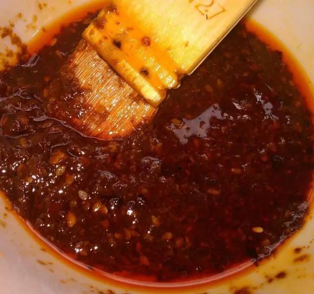 3.炒鍋中放油,小火,放入八角和花椒炸香撈出,留油。倒入切好的郫縣豆瓣醬炒出紅油,放入海鮮醬、甜面醬和蒜蓉辣醬炒香,加入半碗水、白糖、孜然粉、熟芝麻粉,燒開,翻炒幾下,關(guān)火出鍋,醬料就做好了