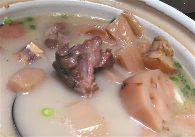 做法:豬手洗凈斬塊,連同洗凈的雞腳一齊放進(jìn)沸水中焯一下,撈出沖洗干凈血沫;香菇用溫水泡發(fā)后,去除硬梗,洗凈;蓮藕、鐵棍山藥分別削皮洗凈,滾刀切厚塊,連同洗凈的栗子仁一齊放入砂鍋內(nèi),加入清水3000毫升,用武火煮沸后改用文火熬2小時(shí),調(diào)味后即可食用。