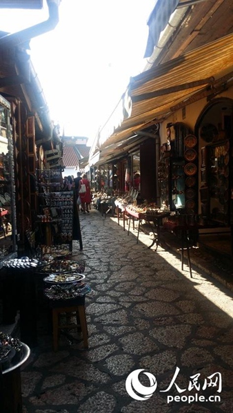 薩拉熱窩現(xiàn)有四個行政區(qū):老城、中心城、新城和新薩拉熱窩,清真寺就坐落在位于老城最繁華的商業(yè)區(qū)――巴什察爾希亞附近。今天的老城商業(yè)區(qū)仍然保留著500年前的樣貌:石塊鋪路,街巷縱橫,各種店鋪鱗次櫛比,商品琳瑯滿目。這里的手工藝品已經(jīng)有幾百年的鍛造歷史,從土耳其式的咖啡具,手工制作的銅質(zhì)花瓶、圓盤藝術(shù)品,到形形色色的木質(zhì)煙柄、煙盒,各種各樣的首飾、裝飾品應(yīng)有盡有。據(jù)說最初這里的每條街道都有自己的主打行當(dāng),久而久之,行當(dāng)就成為了街道的名稱,比如銅匠街、鎖匠街、鞋匠街、裁縫街等等。其中銅匠街是歷史最悠久,也是名氣最大的一條街,這里匯集了制作、經(jīng)營各種銅制品的店鋪。據(jù)說巴爾干的女子有使用銅飾品的習(xí)慣,一般家庭也愛使用銅制器皿,帝國鼎盛時期,這里制作的銅制日用品多達(dá)幾百種。走在銅匠街上,我的眼前不時回放著影片中的畫面――當(dāng)?shù)厝烁嬖V我們,銅匠街就是鐘表匠謝德犧牲前走過的那條街道。影片中謝德沉著穩(wěn)健的步伐,他與熟人打招呼時的那份從容淡定,都給我留下了深刻印象;在我看來,銅匠街也像極了瓦爾特與德軍士兵交火后撤退出來的那條街道。影片中,當(dāng)瓦爾特和他的戰(zhàn)友們撤離清真寺時,德軍一路追趕到這里,鋪子里的伙計們仿佛約定好了一般,紛紛拿起榔頭開始敲打手中的器皿,“叮叮當(dāng)當(dāng)”的敲擊聲此伏彼起,匯成巨大的聲浪,搞得德國人暈頭轉(zhuǎn)向,瓦爾特和他的戰(zhàn)友們得以成功脫身。當(dāng)時的薩拉熱窩處于德占區(qū),百姓對侵略者深惡痛絕,銅匠街上的敲擊聲真實地傳達(dá)出他們不愿做亡國奴、與德軍抗戰(zhàn)到底的心聲。這些伙計和手藝人都是普通的薩拉熱窩公民,可誰又能說他們不是馮.迪特里西上校口中的“瓦爾特”呢?直到今天,那“叮叮當(dāng)當(dāng)”的敲擊聲仿佛還在薩拉熱窩的上空回響……。