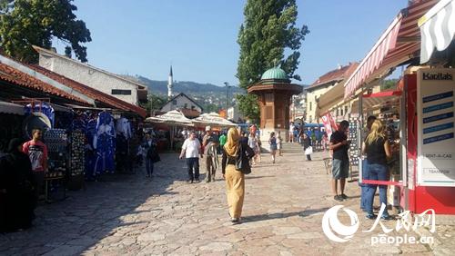 從巴什察爾希亞一路向西,就來到了清真寺――《瓦爾特保衛(wèi)薩拉熱窩》的主要外景拍攝地,鐘表匠謝德犧牲的地方和瓦爾特與德軍槍戰(zhàn)的地方。來到薩拉熱窩以后,我們很少遇見自己的同胞,可清真寺的院落里卻滿眼都是中國人,仿佛薩拉熱窩所有的中國旅行者都在這里聚齊了。他們也是追隨著《瓦爾特保衛(wèi)薩拉熱窩》來到這里的嗎?