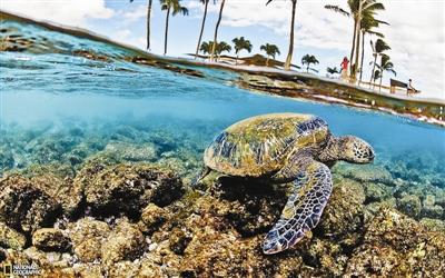 黑沙灘位于夏威夷的大島。大島上有一座活火山旅游勝地,火山噴發(fā)時(shí)噴出的火山灰落到附近的一片海灘上后,導(dǎo)致沙灘的顏色變成了黑色,也就形成了世界上獨(dú)一無(wú)二的黑沙灘。不過(guò)真正吸引蔡牧園的還是黑沙灘上的那些海龜:“在黑沙灘上海龜隨處可見(jiàn),懶洋洋地趴著,享受日光浴帶來(lái)的愜意和滿(mǎn)足。”