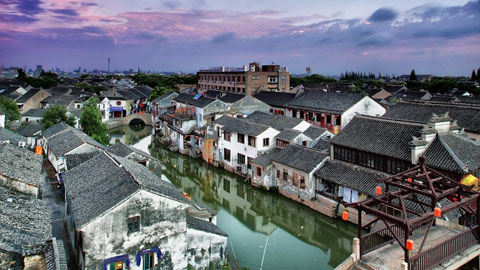 搖船的阿姨是地道的水鄉(xiāng)人,已經(jīng)退休在家閑來無事,出來劃劃船賺點(diǎn)錢。和阿姨聊天,才知道真正的水鄉(xiāng)人是多么的會享受生活。古鎮(zhèn)沿街處處是賣服裝、工藝品的店鋪或咖啡館,不過經(jīng)營的多是外地人,而真正的水鄉(xiāng)人則是溜溜彎,在河邊泡壺茶與三五好友聊聊天,坐收房租就好了。