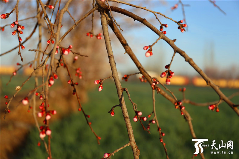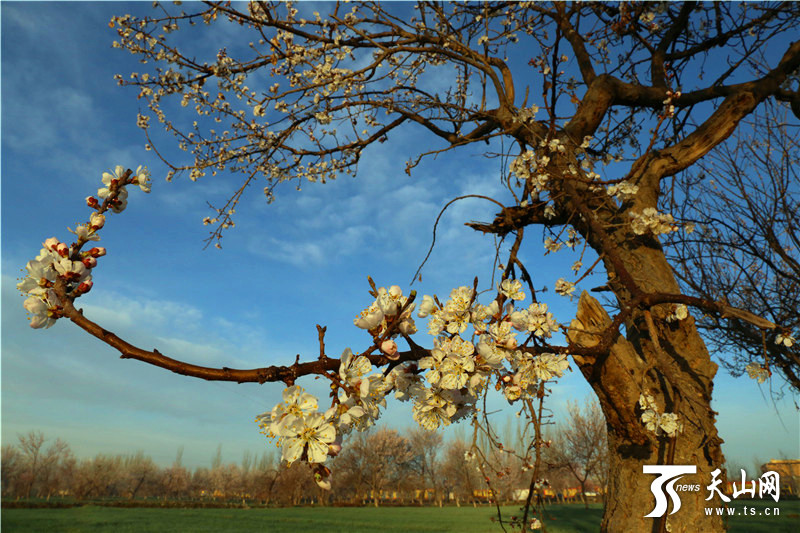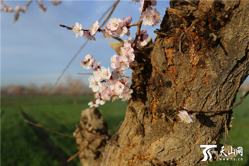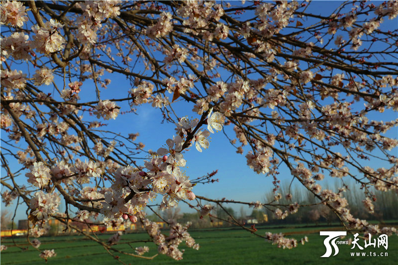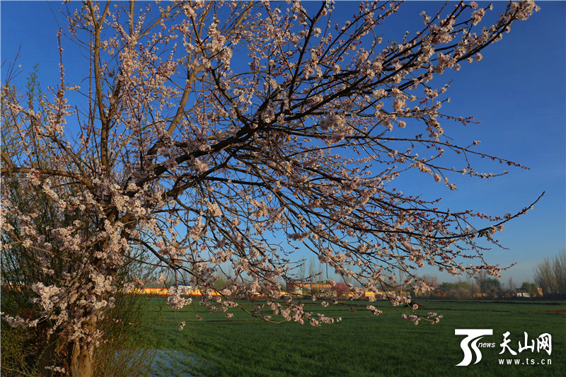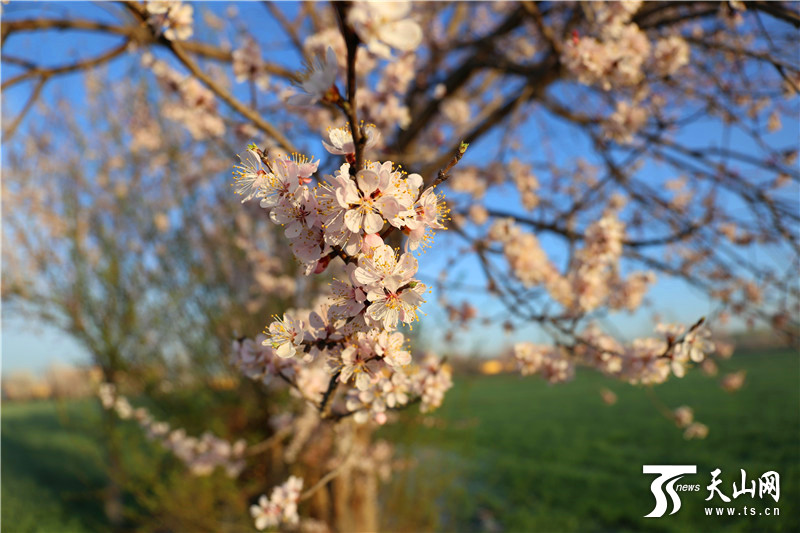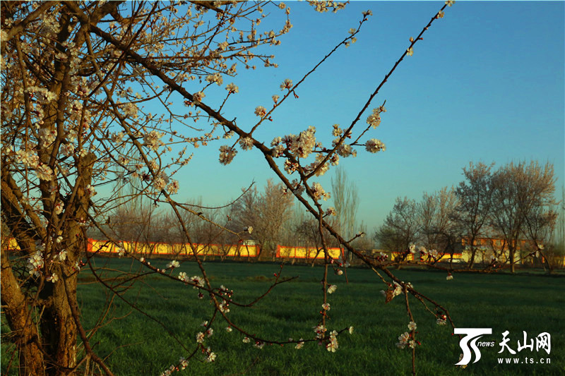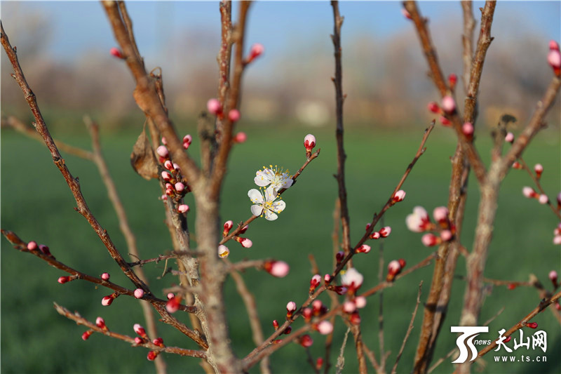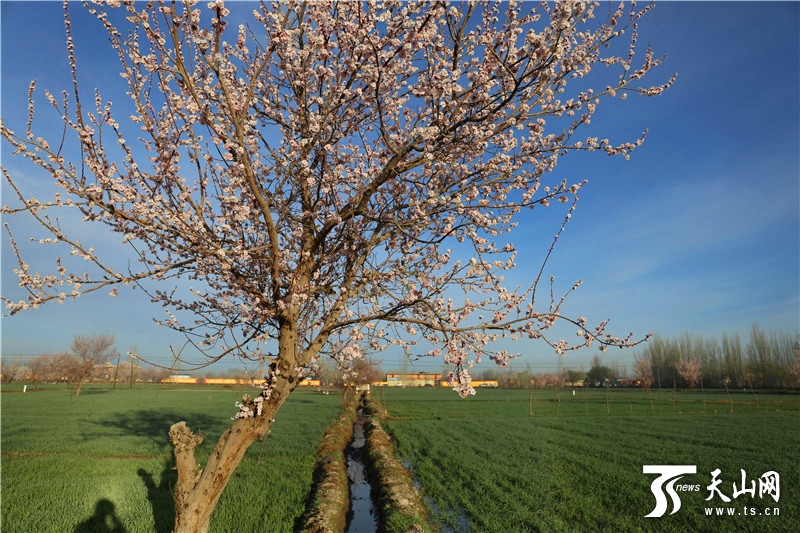 天山網(wǎng)訊(通訊員曹永祺攝影報(bào)道)陽春三月,萬物復(fù)蘇。在阿克陶縣城駛向喀什方向S214省道500米處,一片綠油油的麥苗正在茁壯生長,小路兩側(cè)的杏花朝陽微笑,含露綻放的花朵向行人展示著春的多彩多姿。