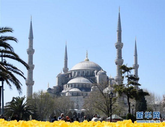 4月14日,在土耳其伊斯坦布爾,人們在藍(lán)色清真寺(蘇丹艾哈邁德清真寺)游覽。藍(lán)色清真寺因采用大量藍(lán)色瓷磚作為裝飾而得名,是伊斯坦布爾地標(biāo)建筑之一。土耳其共和國地跨歐亞大陸,領(lǐng)土面積78.36萬平方公里,其中97%位于亞洲的小亞細(xì)亞半島,3%位于歐洲的巴爾干半島,首都安卡拉坐落于安納托利亞高原西北部。伊斯坦布爾、安塔利亞和伊茲密爾等歷史名城是聞名世界的旅游勝地。新華社記者 賀燦鈴 攝