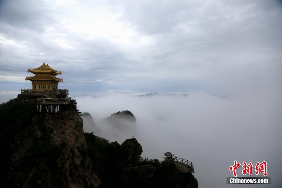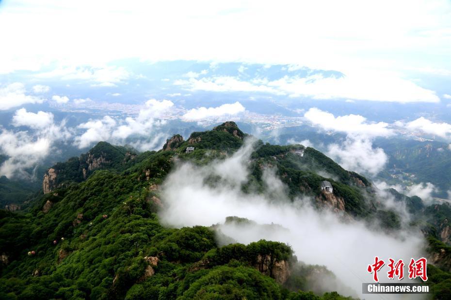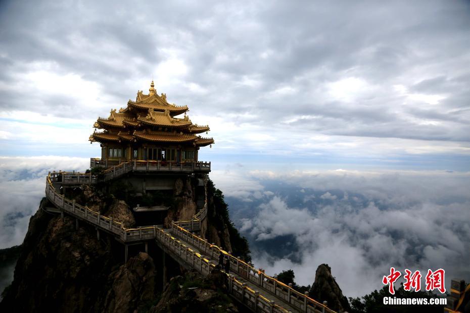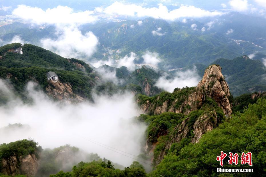 6月8日,雨過天晴的河南老君山云海翻涌,宛如仙境。 中新社記者 鐘欣 攝