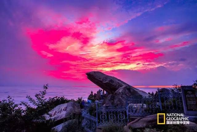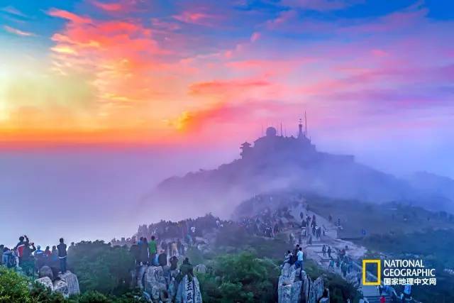 若能趕上雨過天晴,則可在山頂上領(lǐng)略到天上紅霞朵朵,腳下云海滔滔的壯麗景色。人品大爆發(fā)時(shí),還可能見到“佛光”呢!物理學(xué)里佛光是一種“日暈”。是陰沉天氣時(shí),強(qiáng)烈陽光照射云霧表面后形成的一種衍射現(xiàn)象。“佛光”的出現(xiàn)要有陽光、地形和云海等眾多自然因素的結(jié)合,因此比較罕見。