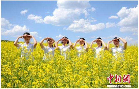 盛夏時節(jié),甘肅渭源縣太白山下連片的油菜花競相開放,黃澄澄的油菜花海,引得蜜蜂、蝴蝶流連其間,攝影愛好者與游客紛至沓來,在花叢中拍照觀賞。金黃色的油菜花海與藍(lán)天、白云、青山、綠樹、蜜蜂、游人交織在一起,構(gòu)成了一幅夏日美景圖。     吳魯 攝