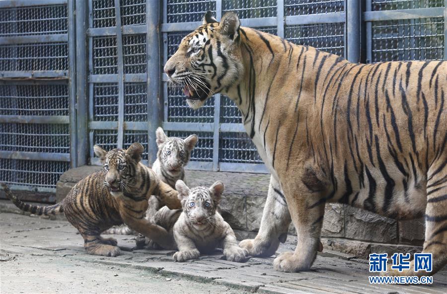 當(dāng)日,山東濟(jì)南動物園三胞胎虎寶寶在虎媽媽的帶領(lǐng)下首次與游客見面。5月25日,首次做母親的6歲孟加拉虎“聰聰”順利產(chǎn)下兩雌一雄三胞胎虎寶寶,其中包括兩只雌性白虎。目前,虎寶寶發(fā)育良好,惹人喜愛。