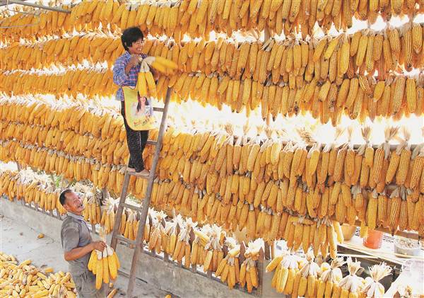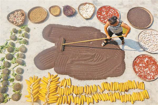 梁平區(qū)蟠龍鎮(zhèn)蟠龍社區(qū)九組,村民在晾曬剛剛收獲的玉米。秋收時(shí)節(jié),當(dāng)?shù)剞r(nóng)家小院曬滿了水稻、玉米、辣椒、大豆等農(nóng)作物,到處五彩斑斕,洋溢著豐收的喜悅。特約攝影劉輝