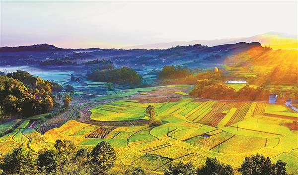墊江縣永安鎮(zhèn)漁湫灘金黃的稻田。通訊員 向曉秋 攝