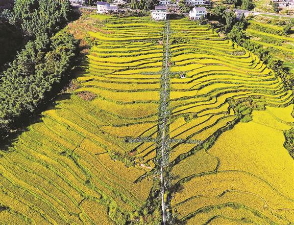 重慶萬(wàn)盛經(jīng)開(kāi)區(qū)石林鎮(zhèn)石鼓村水稻成熟,仿佛給大地鋪上了一層金黃的地毯,農(nóng)舍與梯田相互映襯,交織成一幅美麗的豐收?qǐng)D畫(huà)。記者 熊明 通訊員 婁亞梅 攝