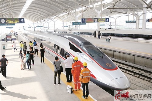復(fù)興號(hào)動(dòng)車組?啃熘輺|站。