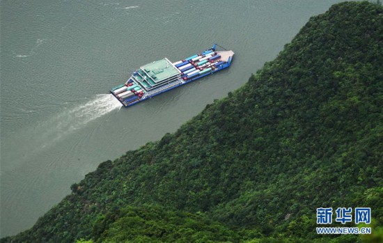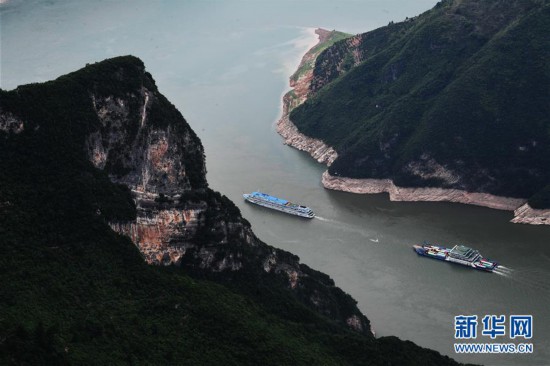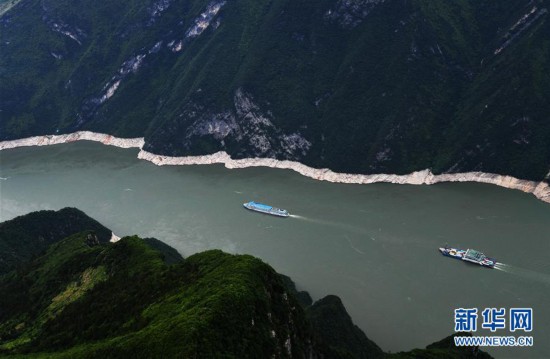 5月23日,船只行駛在長(zhǎng)江瞿塘峽一帶。 新華社記者 王全超攝