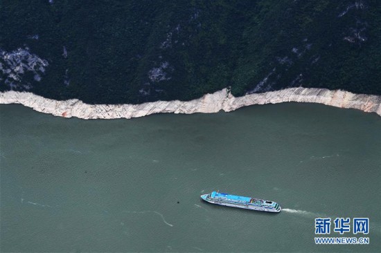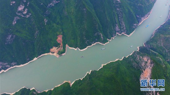 5月23日,船只穿梭在瞿塘峽(無人機(jī)拍攝)。 新華社記者 王全超攝