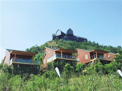 在山坡上一棟棟鳥巢樹屋給游人勾勒出對世外桃源生活的向往。走進屋子,有一股淡淡的木頭香氣。推開窗子,山間樹木青翠,山下湖水盡收眼底,大森林的氣息撲面而來,住在這樣的木屋里,早晨透過窗戶,就能聞到山里清新的空氣,還能感受到陽光曬著被子,林間的鳥兒把你叫醒的那種幸福感。目前,營地設(shè)計建造了101間樹屋客房。此外,55套房車木屋也是營地的特色住宿。紅、藍、黃、綠,顏色豐富的房車木屋整齊排列在不遠處的坡地上。房車木屋外形是一輛車,是一個裝在輪子上的“家”,室內(nèi)空間容納了起居室、臥室、廚房、浴室等“家”的元素。一棟棟小木屋,讓游客體驗到融入自然的樂趣。