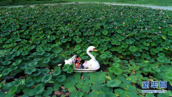 7月12日,游客在河北省灤南縣北河公園內(nèi)乘船觀賞荷花。盛夏時節(jié),河北省灤南縣北河公園里荷花競相綻放,進入最佳觀賞期,吸引了眾多游客和市民前來觀賞。 新華社記者 牟宇 攝