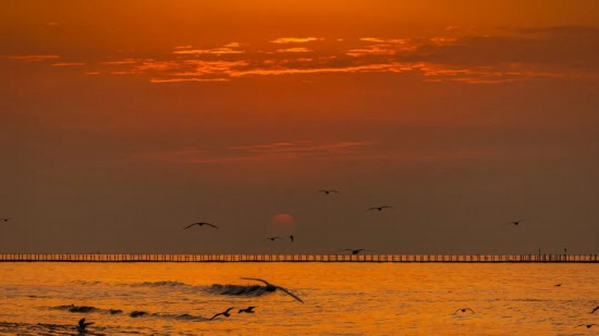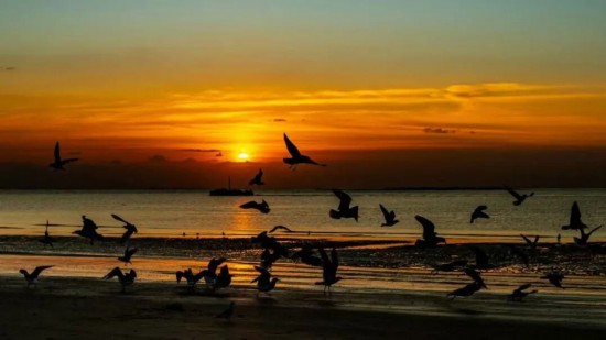 當(dāng)?shù)谝豢|晨光漫過海平面,海上浮橋已鋪滿暖金。成群的海鷗正掠過海洋的碧波,雪白羽翼在晨霧中劃出靈動的弧線。手握一杯氤氳著香氣的熱咖啡,靜觀鷗群翩躚起舞。當(dāng)海鷗的剪影掠過你的咖啡杯沿,這一刻,便是銀灘冬日最溫柔的饋贈。