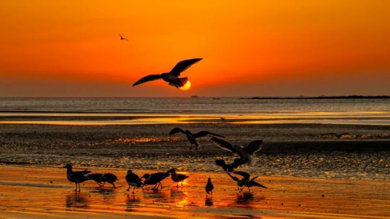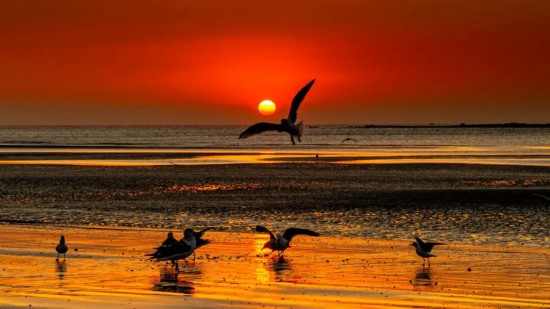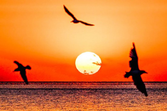 當(dāng)?shù)谝豢|晨光吻上海面,海洋公園的沙灘已伸向泛著金波的琉璃之中。這里是觀鷗的秘境,沒有喧囂人潮,只有成群的海鷗在清冽的空氣中翩躚起舞,它們的白羽掠過湛藍(lán),翅尖輕點漣漪,將冬日的銀灘譜寫成一首靈動的詩。