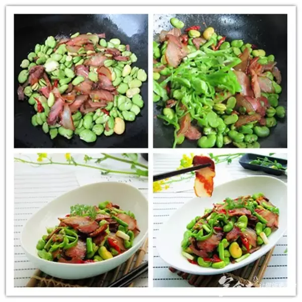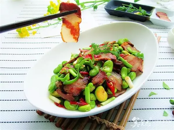 聽老人說春天盡量要把臘肉吃完,放置時間過長,容易有致癌物而且味道也會很怪異。想想也有道理,往年腌制的臘肉太多,放到夏天的時候,那個味道確實(shí)特難以下咽。我一直以為是自己做的不夠好的原因。于是趕緊去集市上買了一些蠶豆青椒回來搭配,炒了滿滿一盤,沒想到家人一下多吃了兩碗飯。這道小炒其實(shí)很簡單的,幾步就可以出鍋一到菜,零難度,但是味道杠杠的!