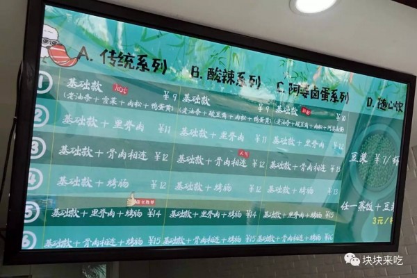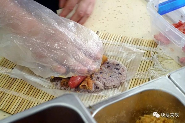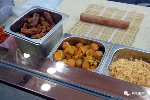 食材方面相對(duì)于價(jià)格來(lái)說(shuō)當(dāng)然是沒(méi)話說(shuō),選擇和搭配也非常多,開(kāi)放式的玻璃廚房將整個(gè)制作過(guò)程都呈現(xiàn)在食客面前,鴨蛋黃都是現(xiàn)剝的,一顆顆沙沙的飽滿的流著油,看著就很有食欲,F(xiàn)在蒸飯共有3個(gè)基礎(chǔ)款,160g標(biāo)準(zhǔn)血糯米,基礎(chǔ)款里老油條和肉松是都有的,這兩樣就足夠讓一天都精神起來(lái)!配菜也很豐富,雪菜、酸豆角、鴨蛋黃是必選,還有一大早去芳婆買(mǎi)的鹵蛋!這就厲害了!簡(jiǎn)直是南京著名小吃聯(lián)名款飯團(tuán)!在此基礎(chǔ)上還可以加肉質(zhì)的食材,分別是里脊肉,骨肉相連和烤腸,都沒(méi)每天現(xiàn)炸的哦,如果還不過(guò)癮,更有加分的臺(tái)式烤腸,實(shí)在不行就來(lái)個(gè)全套!全套飯團(tuán)滿足了選擇困難癥也最受歡迎,捏好立刻拿在手上啃是對(duì)飯團(tuán)最大的尊敬。