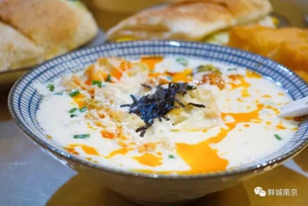 豆?jié){是一種很奇妙的東西,比清茶更醇厚,比牛奶更質(zhì)樸,有股很舒服的煙火氣…這里的豆?jié){,有著臺灣古法石磨的原汁原味,又有著現(xiàn)磨現(xiàn)賣的新鮮純粹,都讓人無法錯過。散發(fā)著淡淡茶香的紅茶豆?jié){,茶味之于豆香,不喧兵奪主反而錦上添花,回味悠長~而咸豆?jié){的存在,實在是讓人驚喜,顏色好看到第一眼以為是個調(diào)色盤。幾塊細(xì)膩的豆花打底,上面鋪滿了海苔榨菜,泡上幾大段酥軟的油條,再加上幾滴香而不辣的紅油,好不豐富。咸鮮中帶著點微酸,食欲一下子全都出來了。