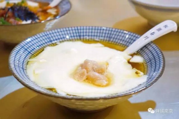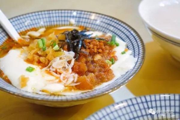 和咸豆?jié){很像的咸豆花則比前者更加厚實些,油條也變成了酥脆的油條碎,還滴了香醋,豆花拌開后依舊順滑,一勺下去滿足感爆棚!甜豆花的層次簡單些,紅糖水泡豆花,再有幾顆熬到軟糯的花生,是最樸實的甜,有滋有味完全不會有豆腥味。